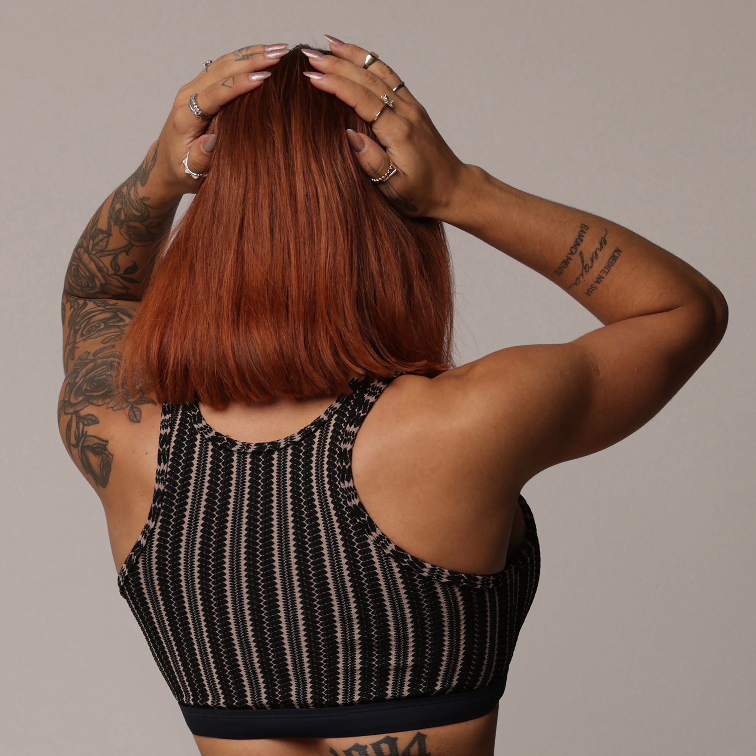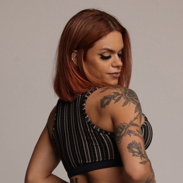 Com um tecido texturizado em preto e com fundo nude, essa linha é perfeita para mulheres que sabem o que querem e não têm medo de mostrar sua determinação.
