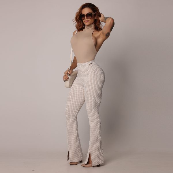CALÇA FLARE JACQUARD LUXE NUDE