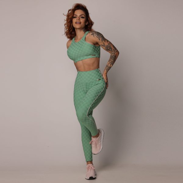 LEGGING BICOLOR EMPINA BUMBUM JACQUARD XEQUE-MATE MENTA