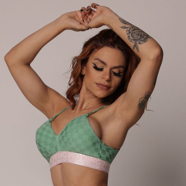 O clássico padrão xadrez, que remonta ao antigo Egito como um símbolo de disciplina e ousadia, renasce em um elegante tom verde água.