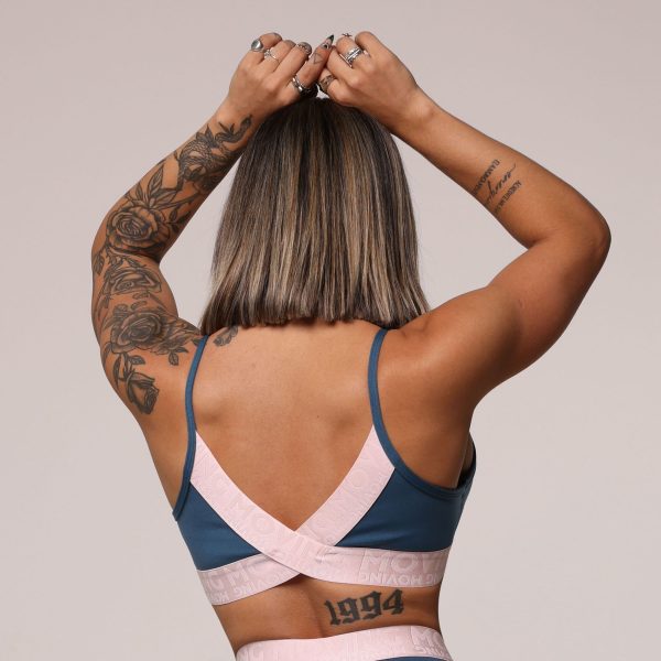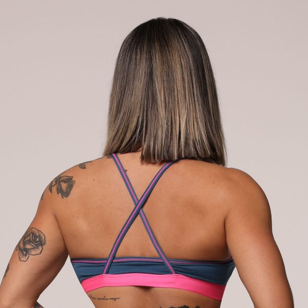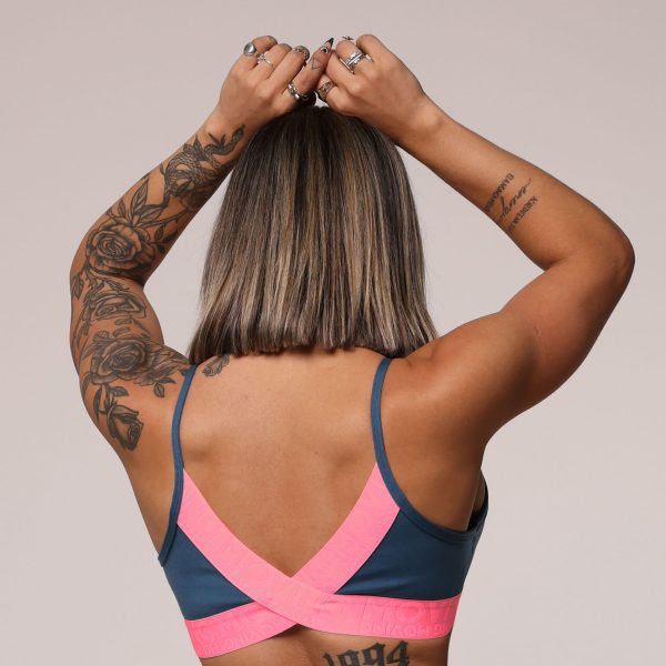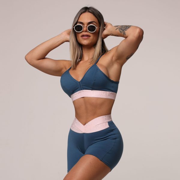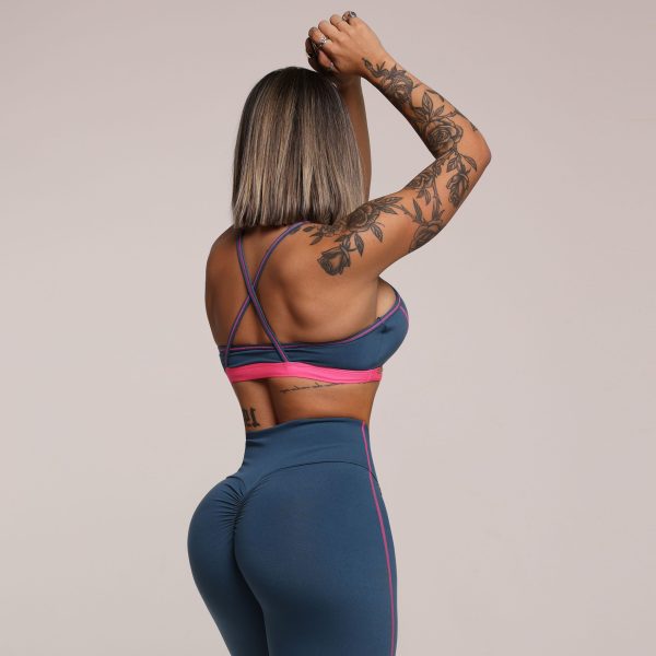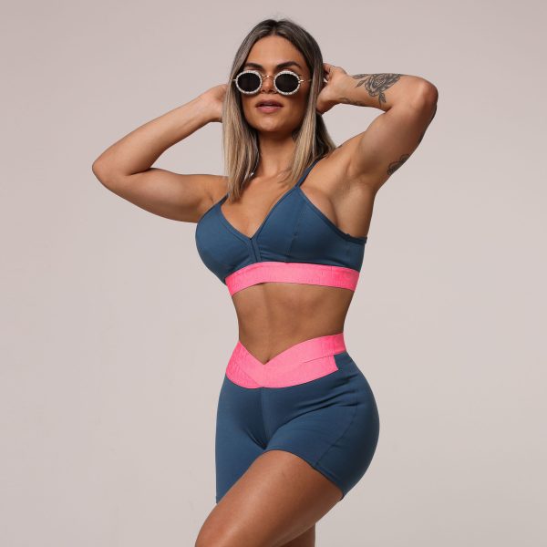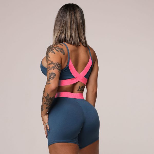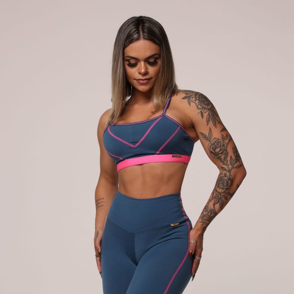 TOP SEUL AZUL PETRÓLEO COM ELÁSTICO ROSA NEON