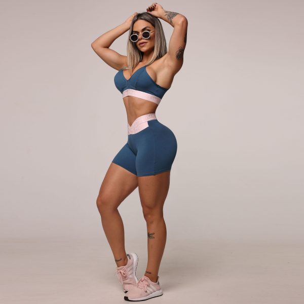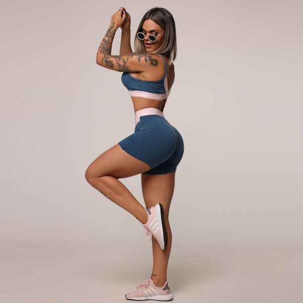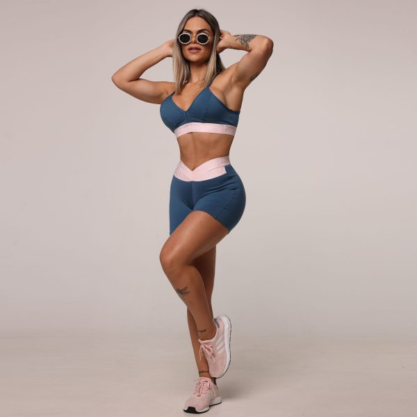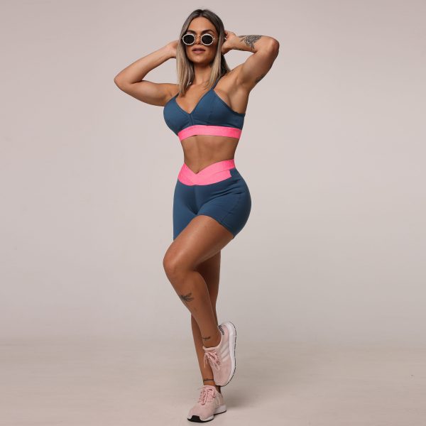 SHORT HIT AZUL PETRÓLEO COM ELÁSTICO ROSÊ
