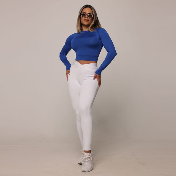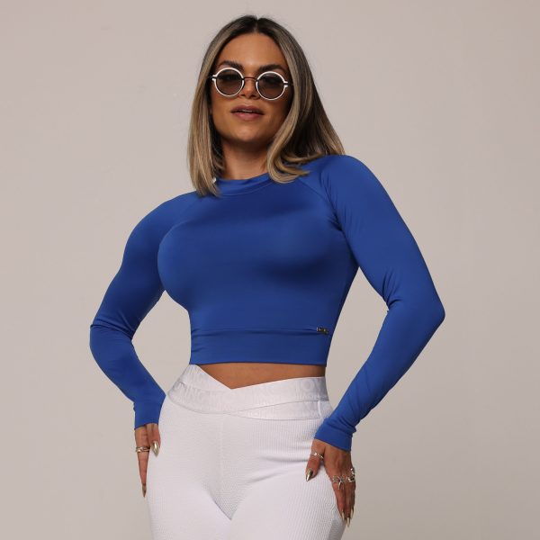 CROPPED CARMEL MANGA LONGA AZUL SAFIRA