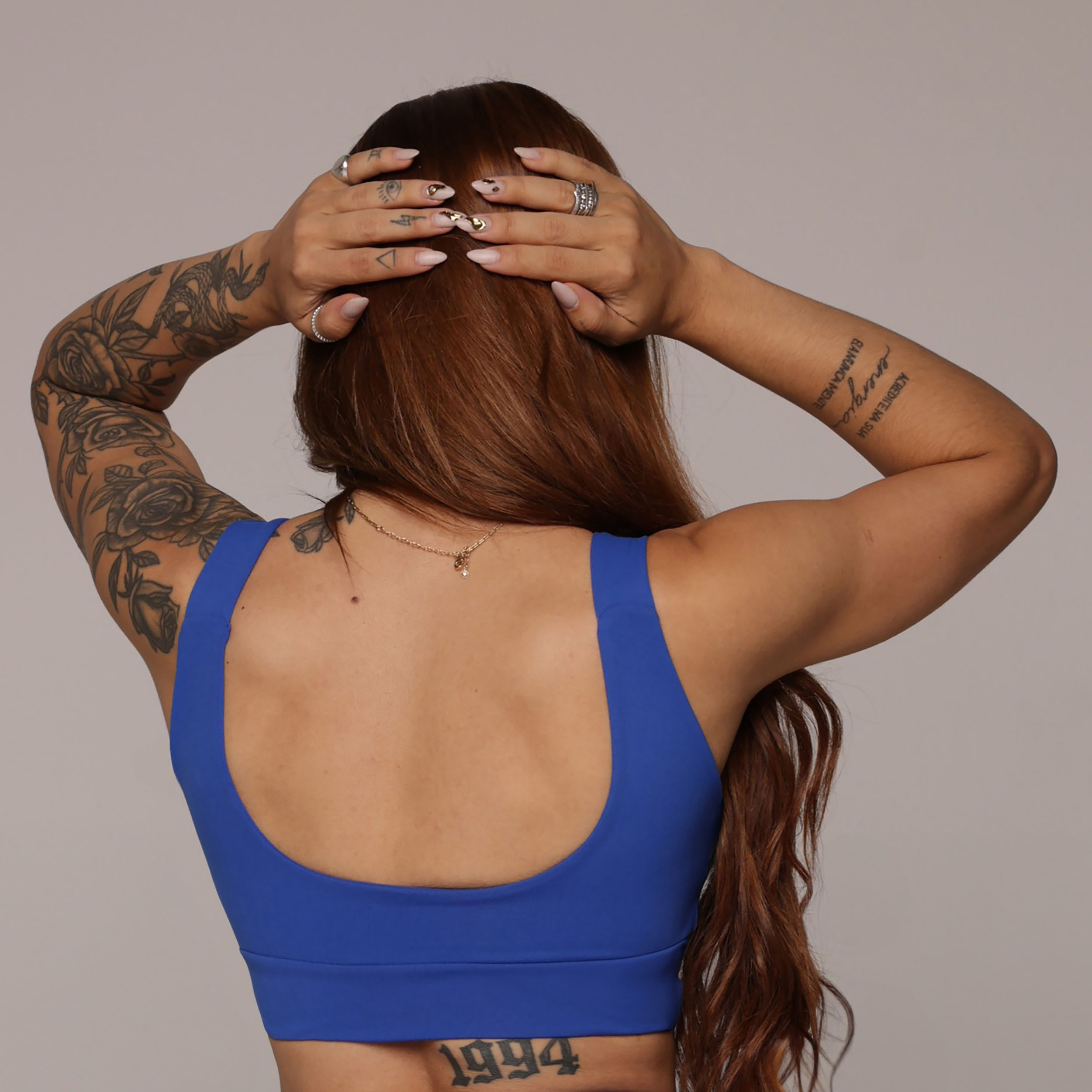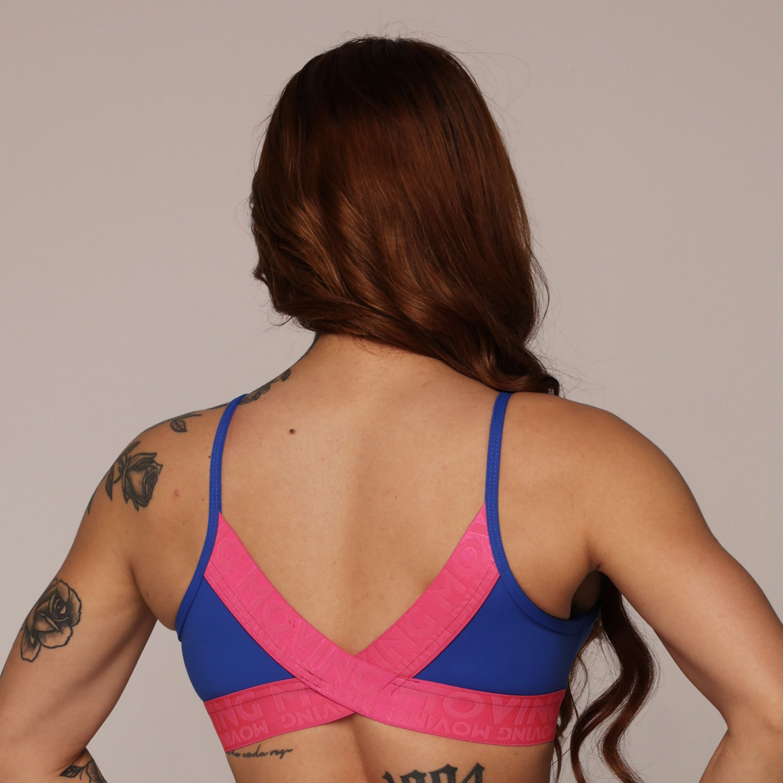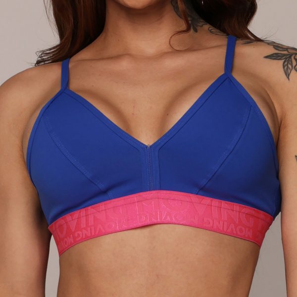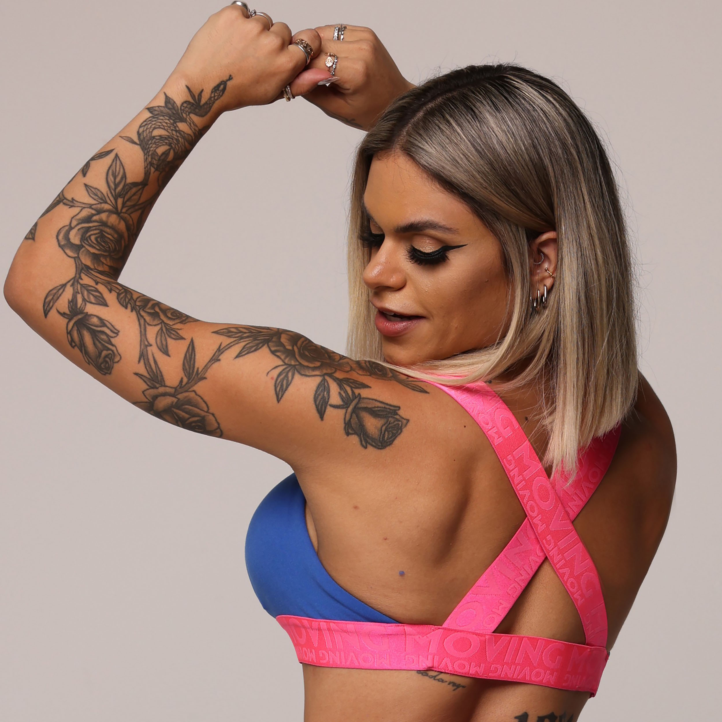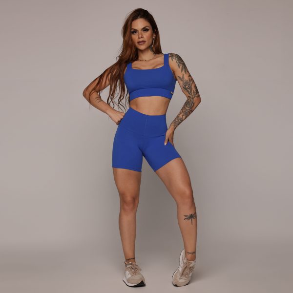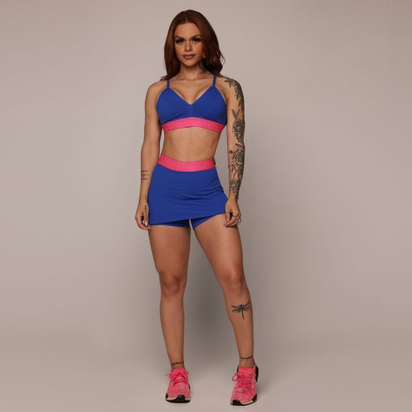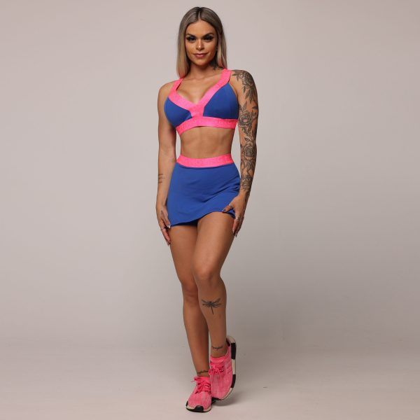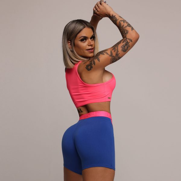TOP MILANO AZUL SAFIRA COM ELÁSTICO ROSA NEON