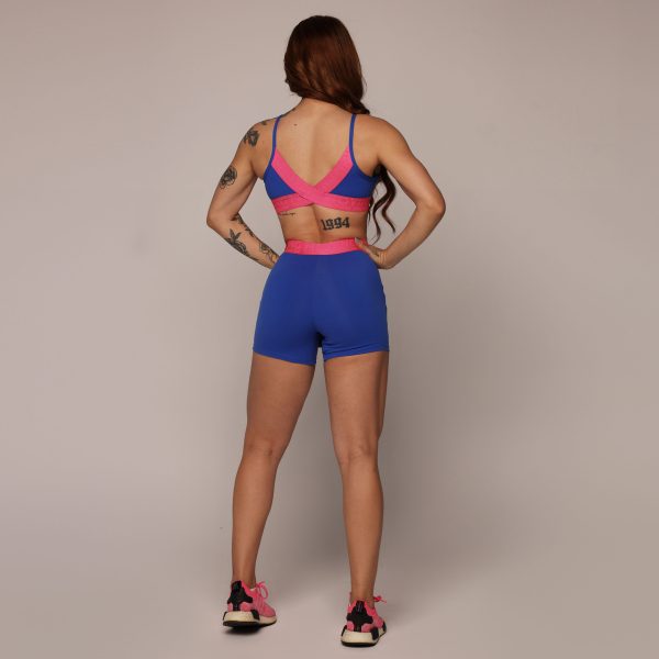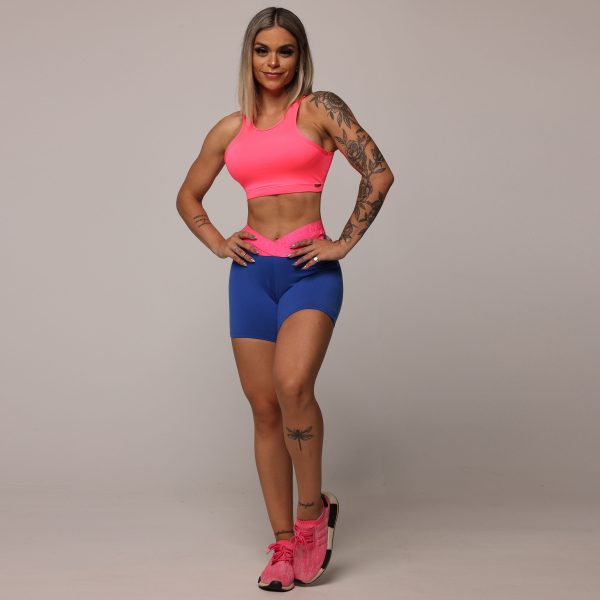SHORT HIT COMUM AZUL SAFIRA COM ELÁSTICO ROSA NEON