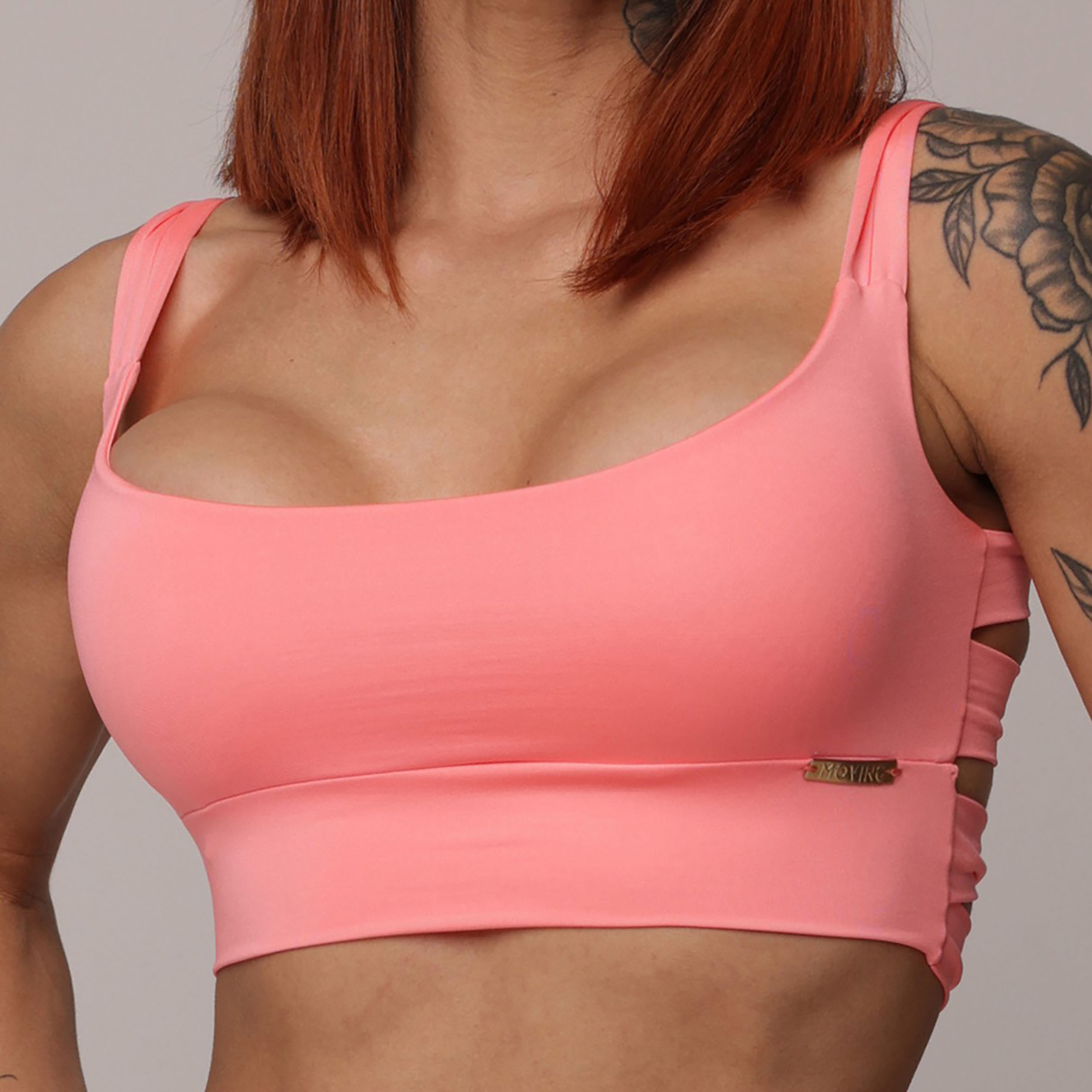 Vista o Goiaba da Moving e realce toda a energia que há em você!Inspirado na energia e na vibe da cidade Seattle, o Top une estilo e funcionalidade. Com alças duplas que cruzam delicadamente nas costas, ele oferece um design diferenciado e segurança extra para seus treinos mais intensos. Essa combinação de design moderno e conforto é perfeita para mulheres que querem liberdade de movimento com um toque de sofisticação. COMPOSIÇÃO: