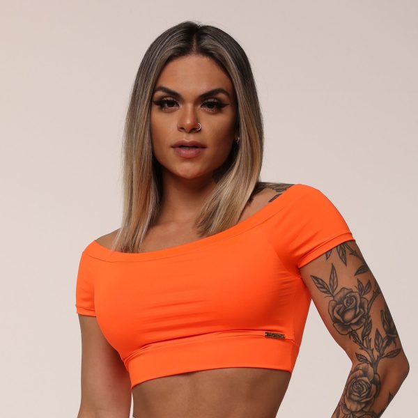 TOP MILANO LARANJA NEON COM ELÁSTICO LARANJA NEON