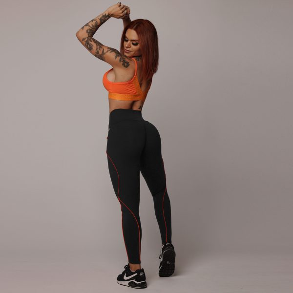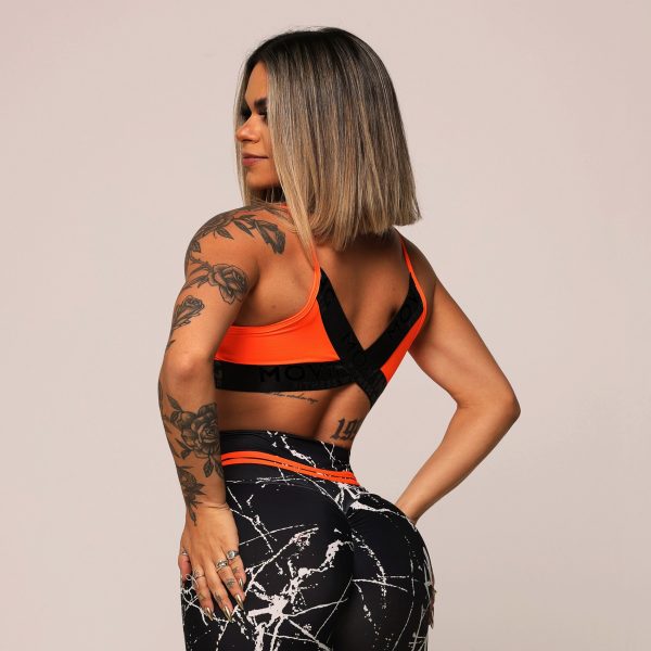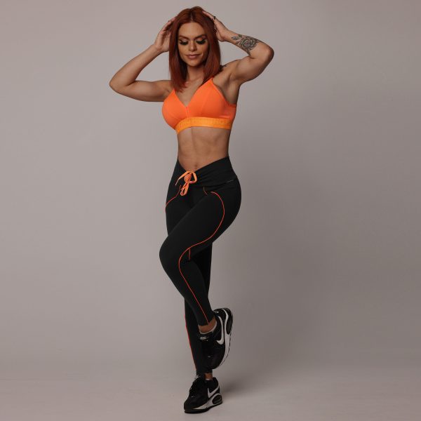 TOP MILANO LARANJA NEON COM ELÁSTICO PRETO ABSOLUTO