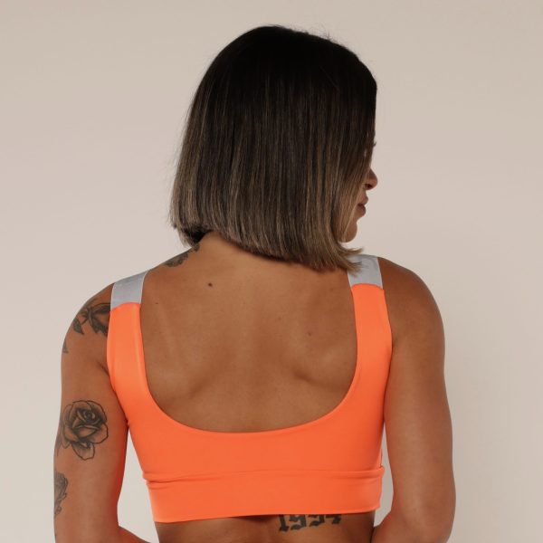 TOP FAIXA LARANJA NEON COM ELÁSTICO CINZA