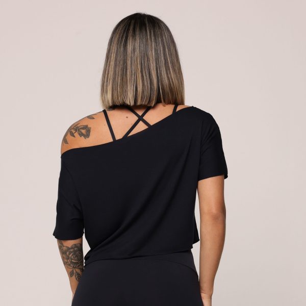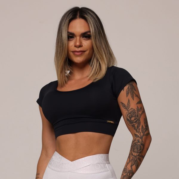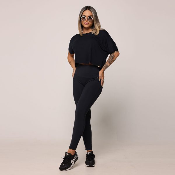 CROPPED OMBRO A OMBRO DE VISCOSE PRETA