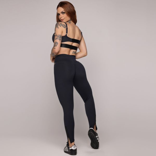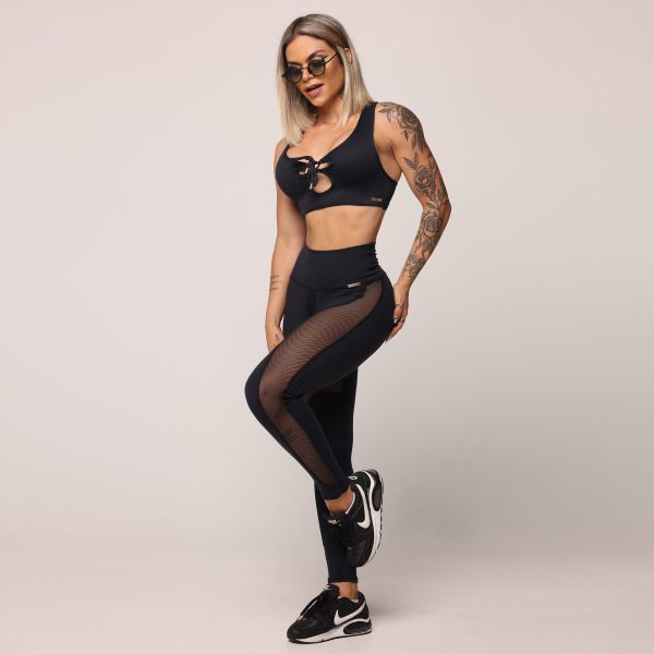 LEGGING COMUM RECORTES EM TELA FRONTAL PRETA