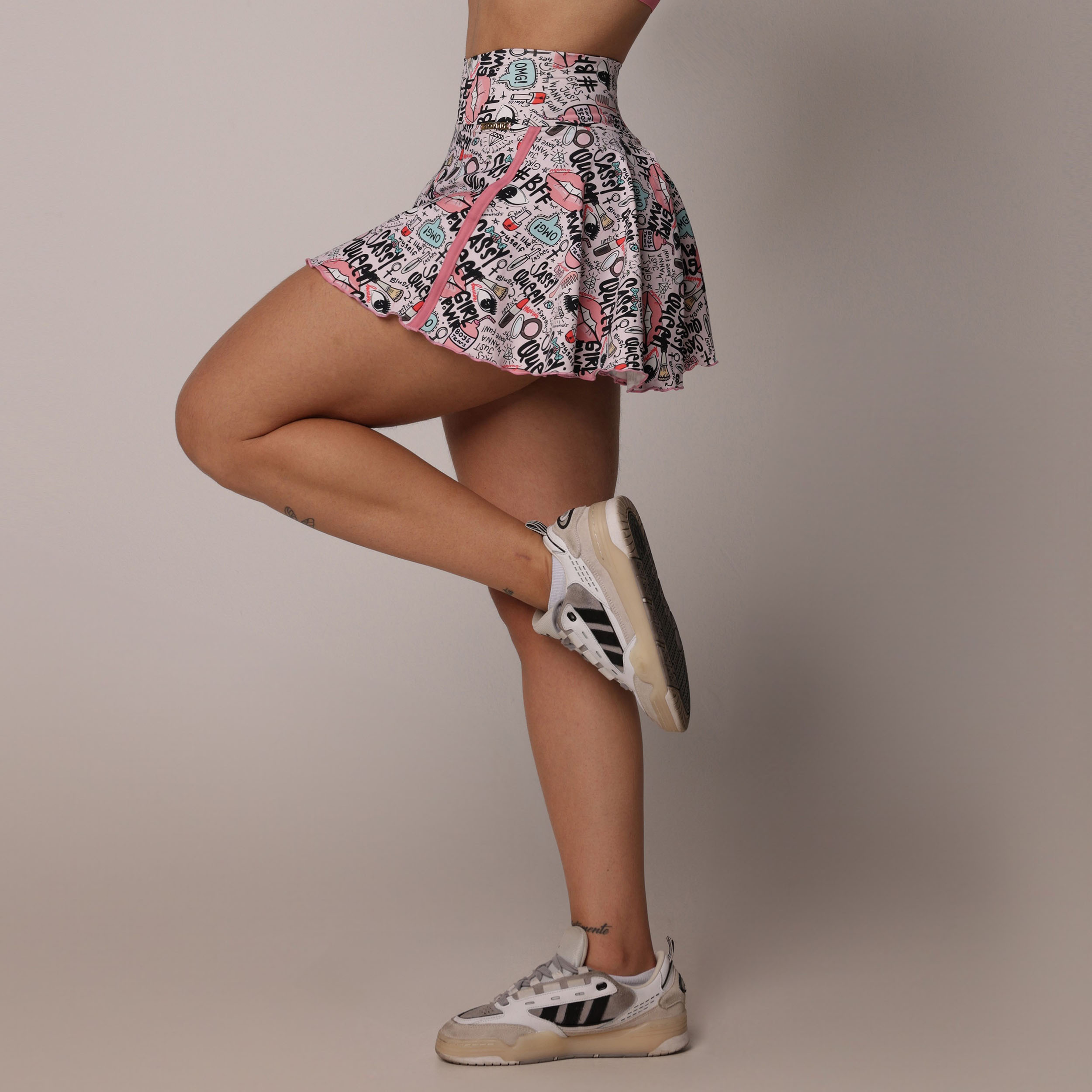 A costura modeladora realça o contorno dos quadris, elevando sua confiança com um visual marcante.