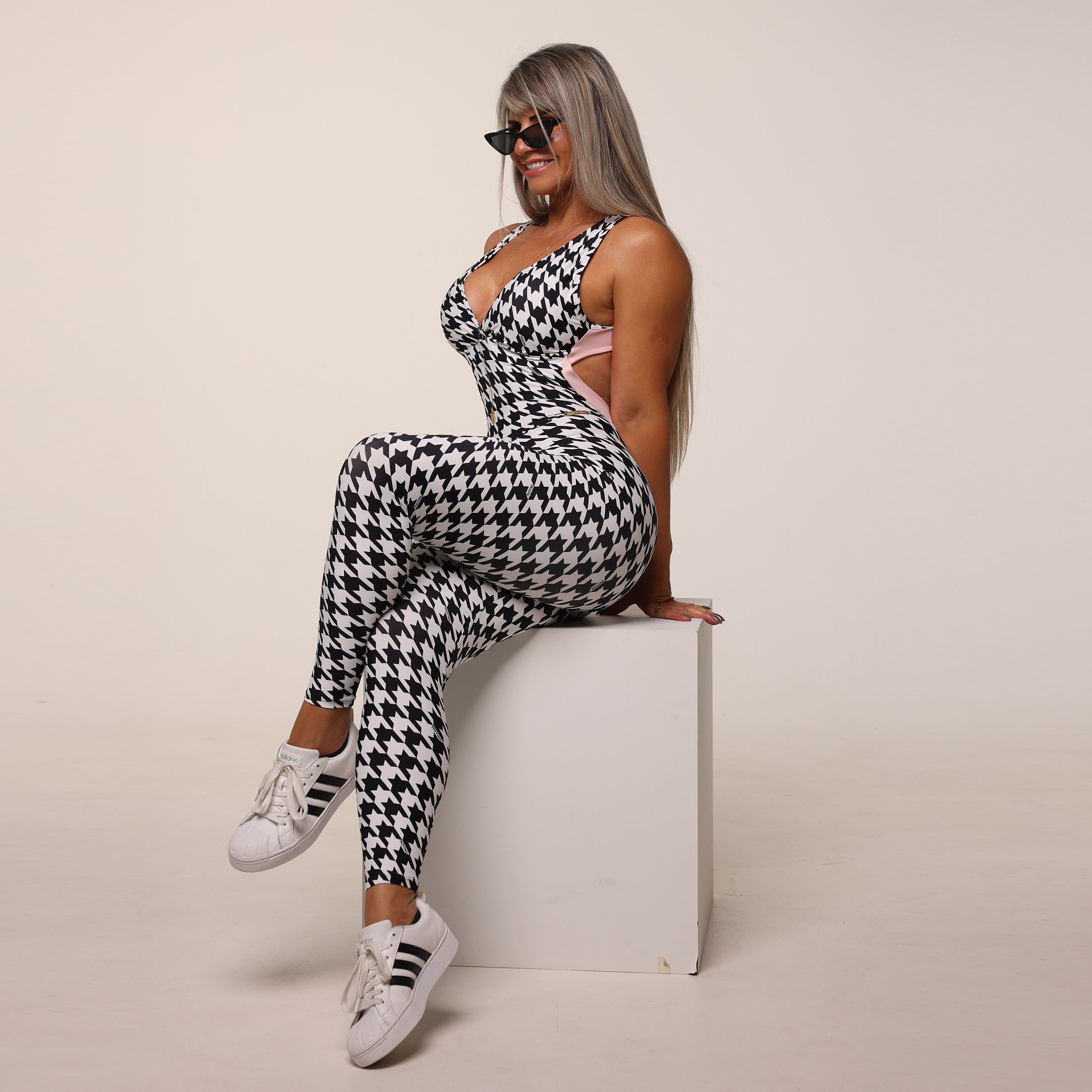 MACACÃO NOCAUTE EMPINA BUMBUM PIED DE POULE EXCLUSIVO
