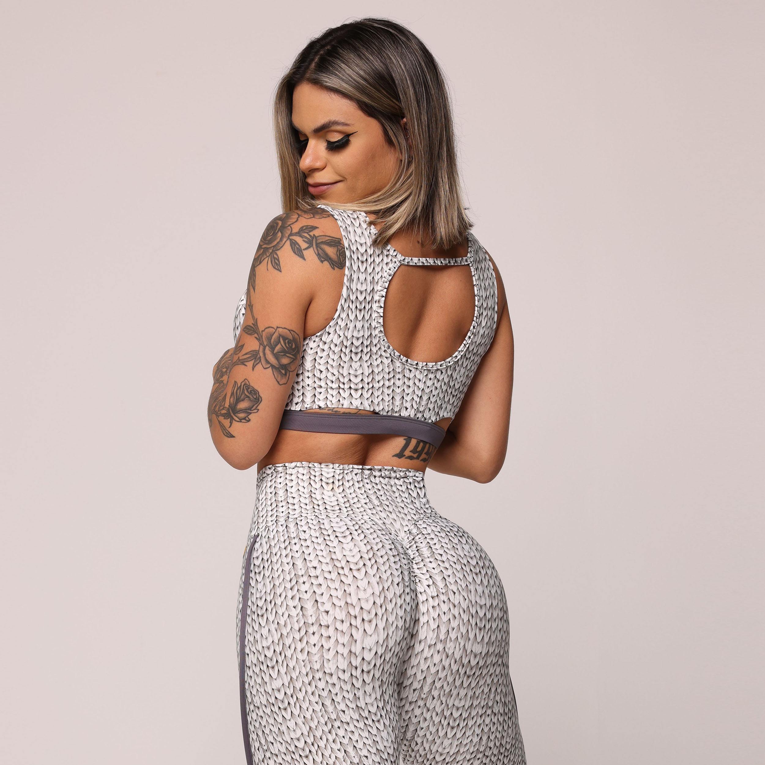 Utilizando tecidos de alta tecnologia, trazemos estampas realistas de tricot em 3D para o universo fitness. Sinta-se confortável e confiante enquanto veste a história do tricot de uma maneira completamente nova!
