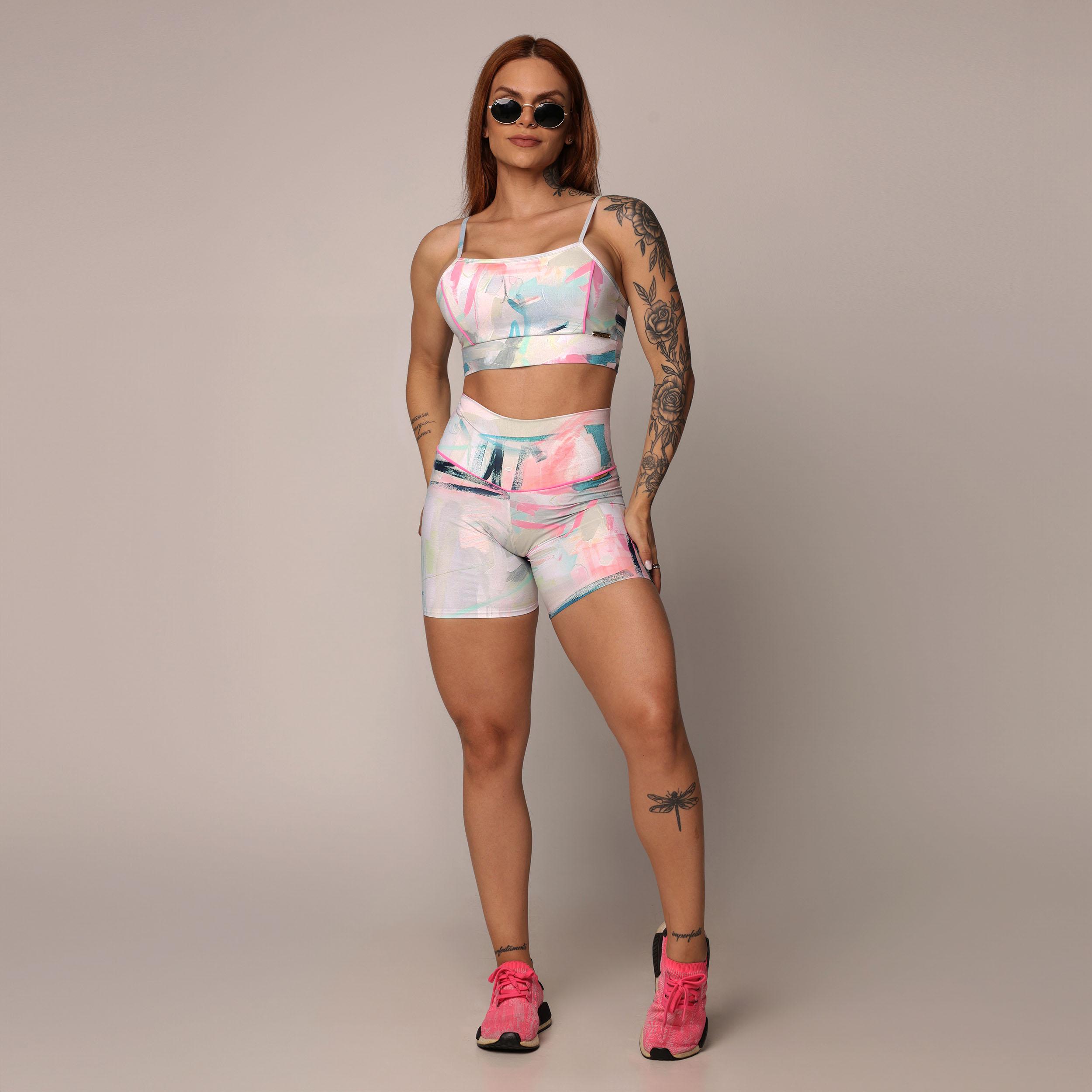Inspirada em pinturas, a coleção Paint é uma mistura de criatividade e expressão, trazendo uma estampa que lembra pinceladas em aquarela. Com tons suaves que se mesclam como em uma obra de arte, essas peças foram feitas para quem quer liberdade de movimento e estilo único. Ideal para mulheres que valorizam o visual autêntico, leve e cheio de personalidade, a Paint é uma verdadeira tela em movimento.