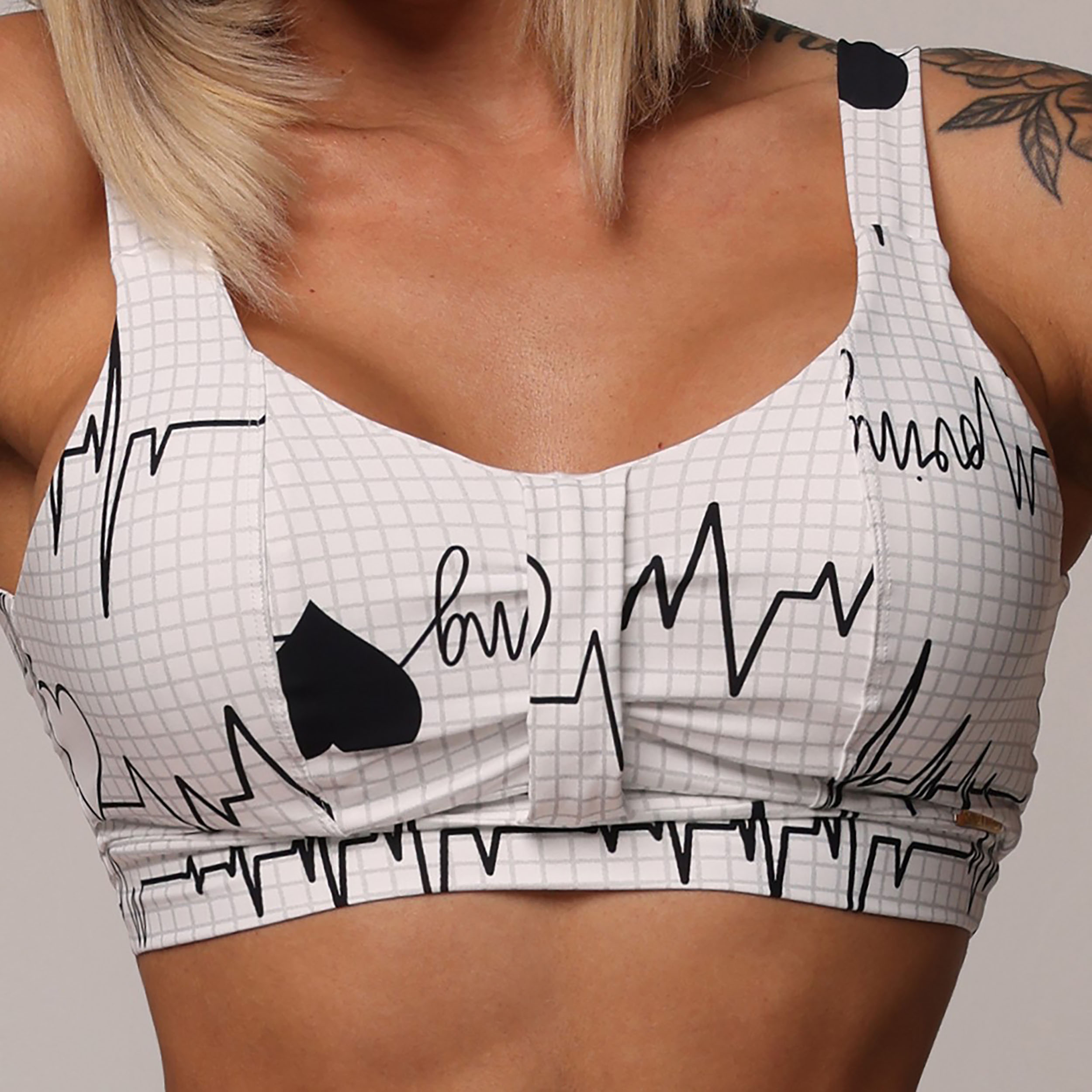 A coleção Cardio, com seu fundo branco quadriculado e batidas do coração desenhadas, é a representação visual da busca por uma vida saudável.