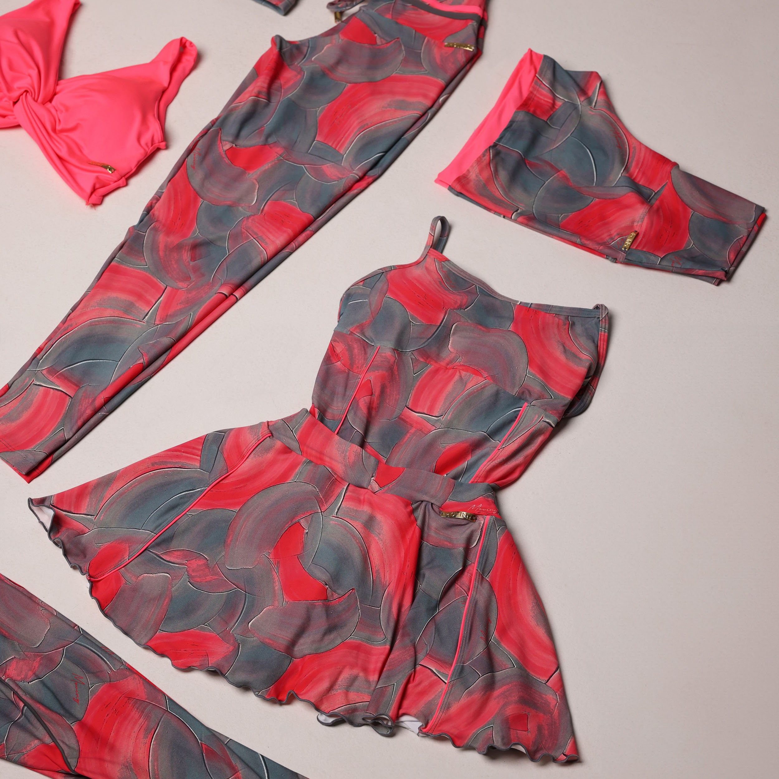 Expressiva, intensa e cheia de personalidade — Vividité é a tradução visual de quem vive com alma. As pinceladas em vermelho, rosa e cinza formam uma composição vibrante, que mistura arte e movimento com sofisticação. Cada peça carrega a energia de um quadro vivo, feito para quem se move com intensidade e não passa despercebida. Um traço de personalidade para quem vê beleza em cada passo.
